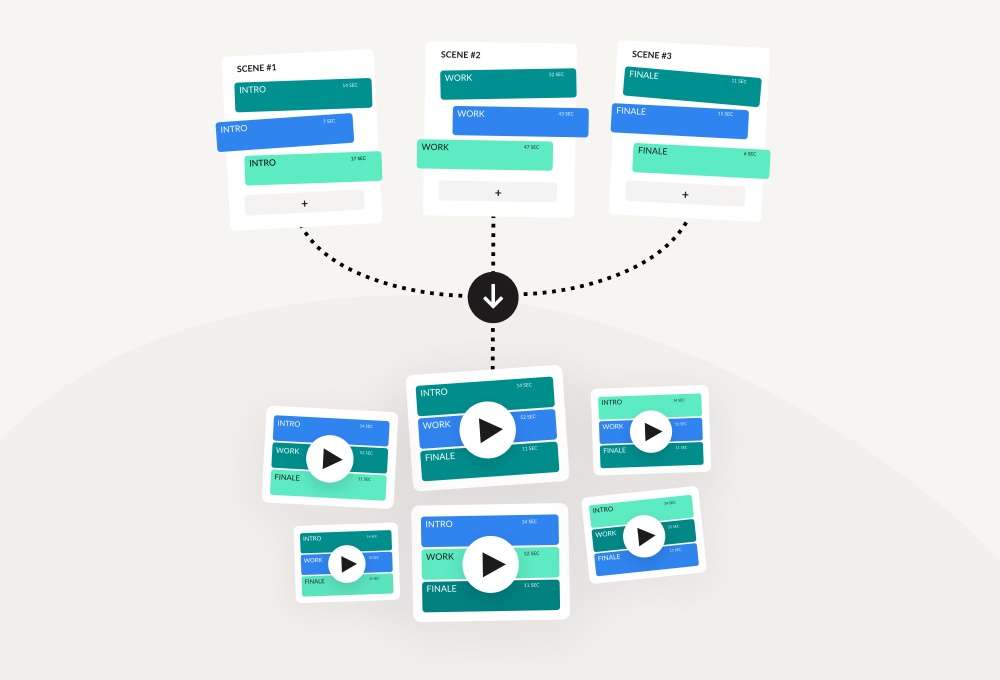Было: 3 видео с 3 сценамиСтало: 27 уникальных видео